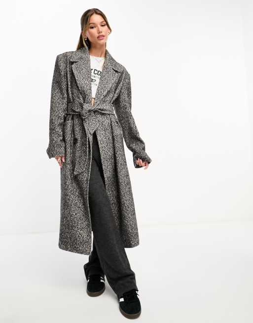 Miss Selfridge - Sort/hvid maxifrakke med slå-om og sildebensmønster
