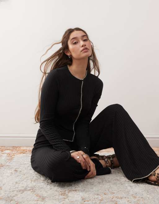 Miss Selfridge - Sort jerseycardigan med tungesting