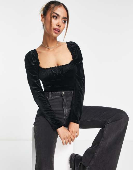 Miss Selfridge - Sort milkmaid-bodystocking i velour