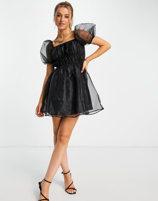 Miss Selfridge - Sort minikjole med store organza-ærmer
