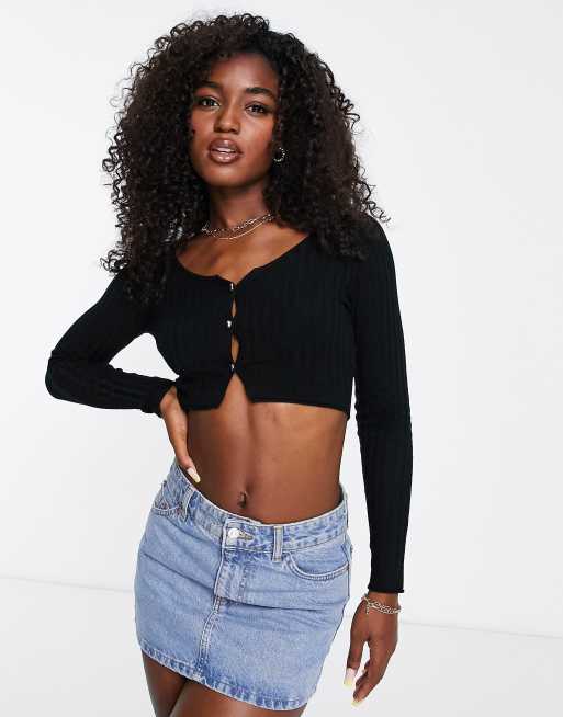 Miss Selfridge - Sort ribstrikket cardigan med hjerteknapper