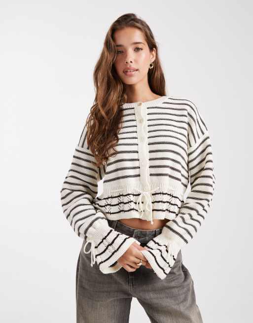 Miss Selfridge - Strikket cardigan med striber og bindebånd i taljen
