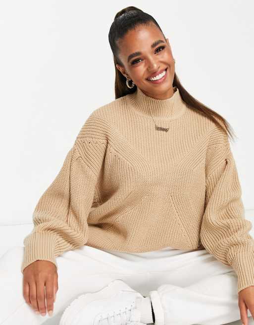Miss Selfridge - Trøje i kamel med slids i kanten og ståkrave