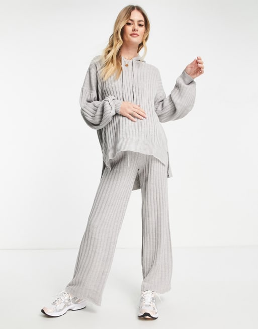 Missguided Maternity - Gråt sæt med strikket hættetrøje og bukser med vide ben