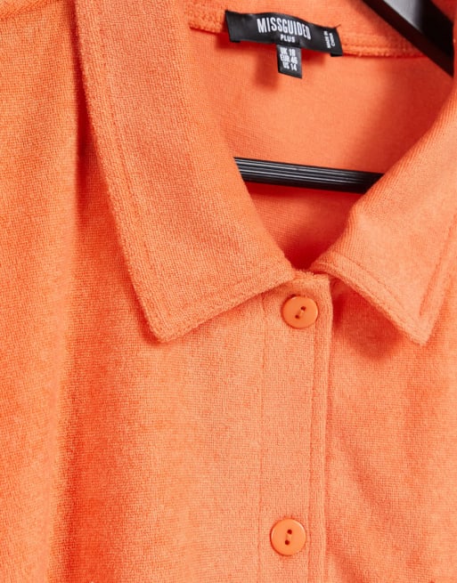Missguided Plus - Orange sæt med skjorte og shorts i frotte