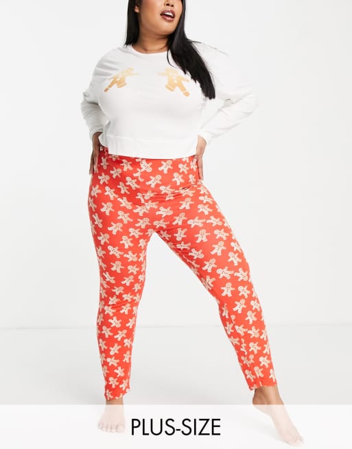 Missguided Plus - Rødt pyjamassæt med print med honningkagemænd