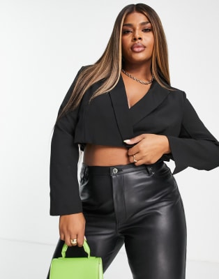 Missguided Plus - Sort sæt med cropped blazer og bukser med lige ben