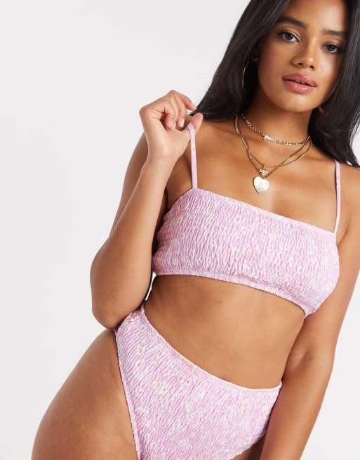 Missguided - Lyserødt rynket bikinisæt