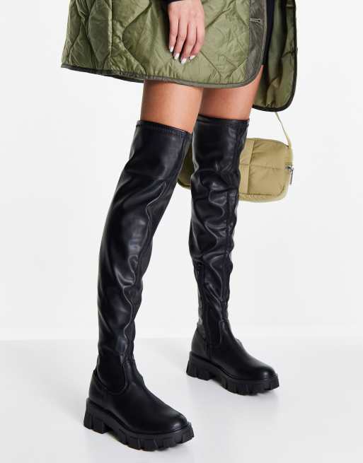 Missguided - Overknee-støvler med chunky sål i sort