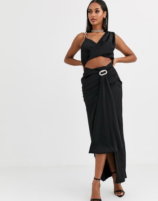 Missguided — Peace and Love — Sort sæt i satin med drapering
