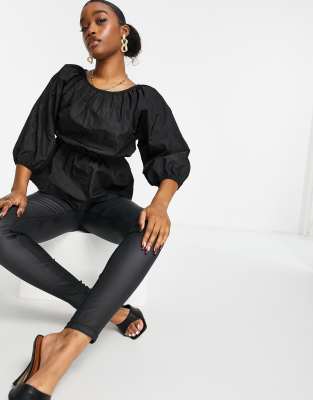 Missguided - Sort poplin-top med rynkedetalje