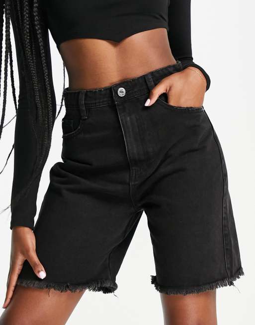 Sorte longline denimshorts fra Missguided