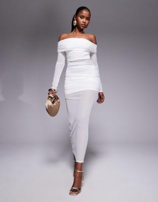 Missy Empire - Hvid bardot-maxikjole med mesh-indsats