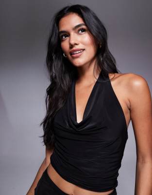 Missy Empire - Stram sort top med dobbelt formgivende effekt og vandfaldsudskæring