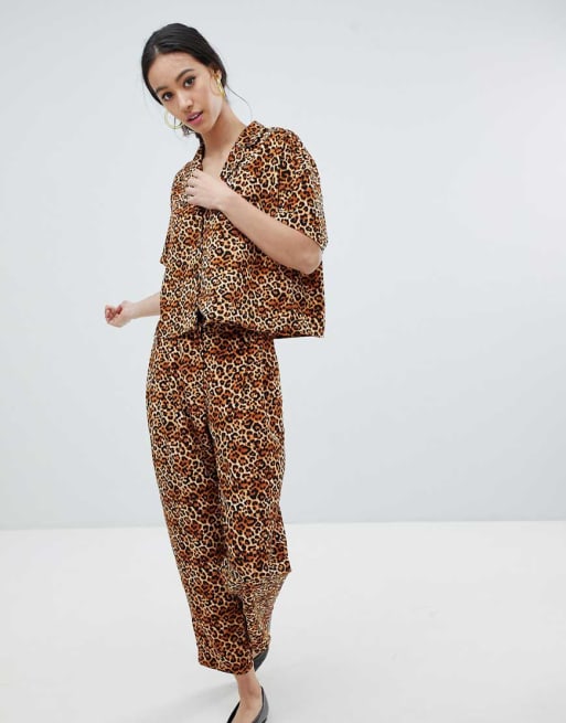 Kort bluse og bukser i leopardprint fra Monki - del af sæt