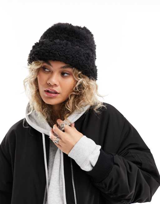Monki - Blød sort hat i imiteret pels