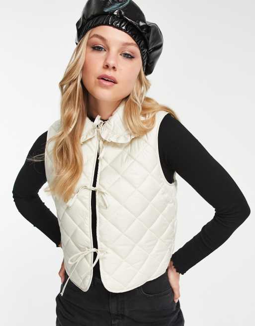 Monki - Cremefarvet vatteret vest med krave