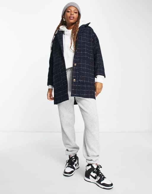 Monki - Frakke med krave og påsyede lommer i marineblåt gittertern