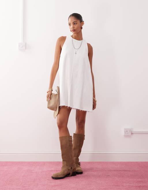 Monki - Hvid ærmeløs minikjole med A-form og flossede kanter