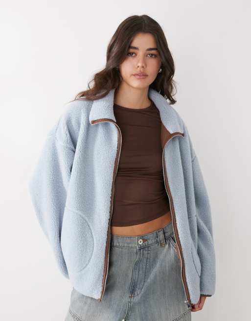 Monki - Langærmet blå fleecetrøje med kontrastlynlås