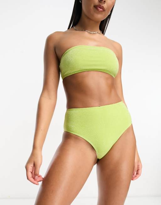 Monki - Limegrønne højtaljede bikinitrusser med glimmer