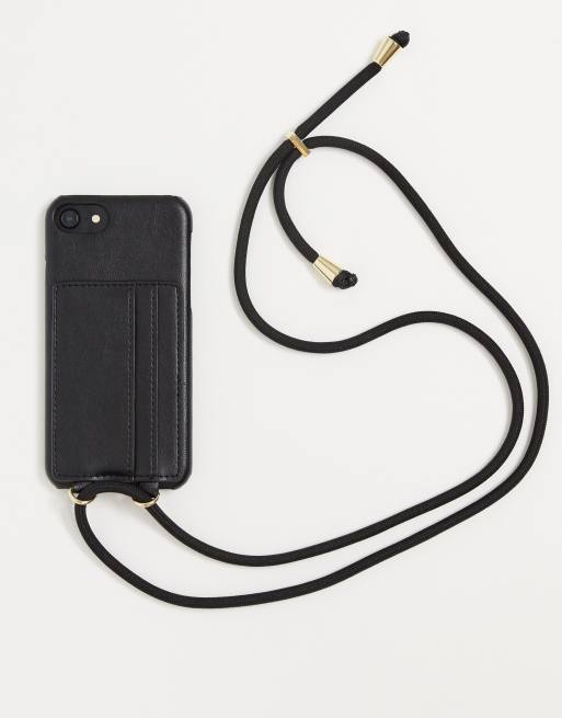 Monki - Lulu - Sort pung til telefon i vegansk læder med halskæde