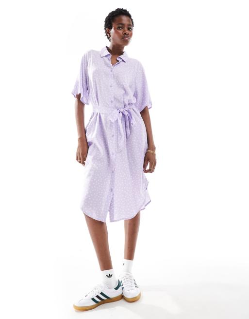 Monki - Lyslilla midi-skjortekjole med bindetalje og småprint - Kun hos ASOS
