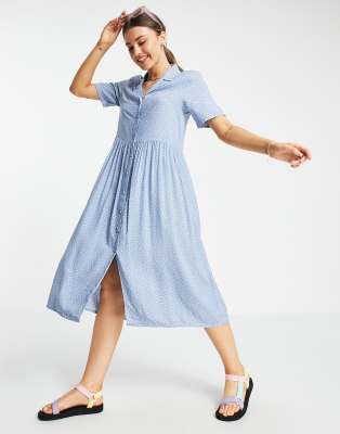 Monki - Mattan - Blå midi-skjortekjole med prikker - MBLUE