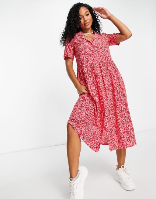 Monki - Matten - Rød midi-skjortekjole i viskose med blomsterprint - RED