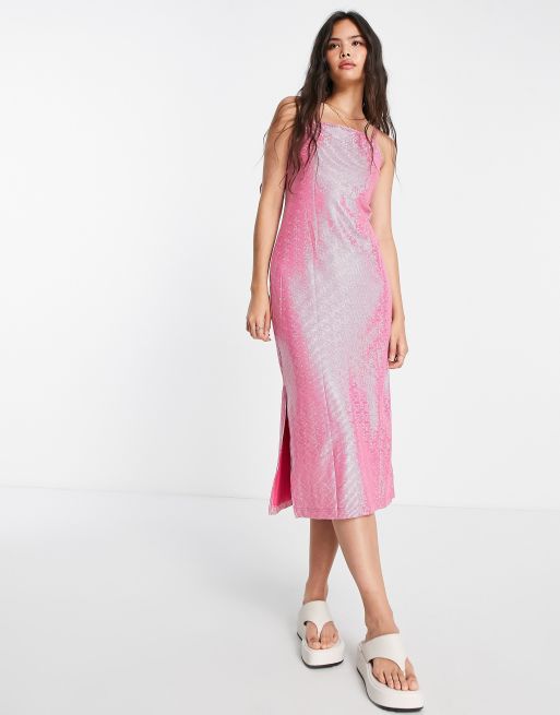 Monki - Midikjole i holografisk lyserød