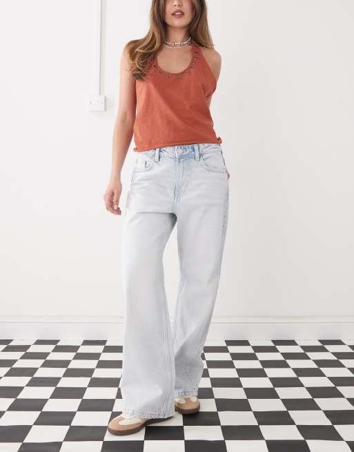 Monki - Missy - Lavtaljede jeans i lyseblå vask i løstsiddende pasform