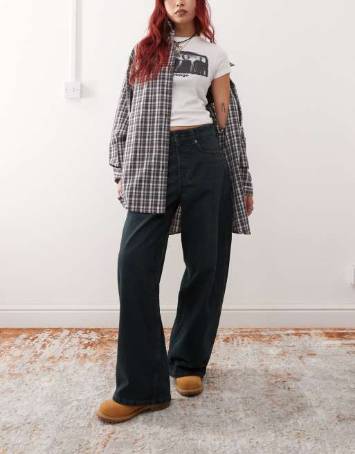 Monki - Peggy - Røget blå løstsiddende posede jeans med lav talje
