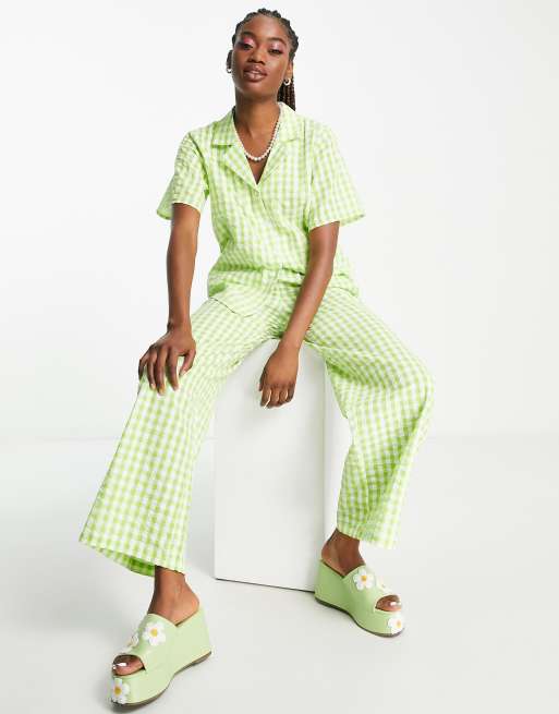 Monki - Skjorte med reverskrave i grøn gingham - Del af sæt