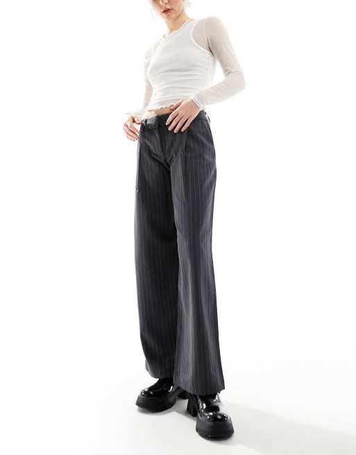 Monki - Skræddersyede, tapered bukser med nålestriber i grå