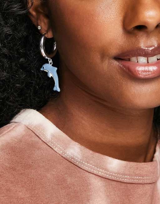 Monki - Sølvfarvede hoop-øreringe med delfin-design