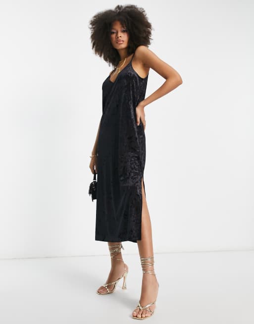 Monki - Sort slip-midikjole i velour