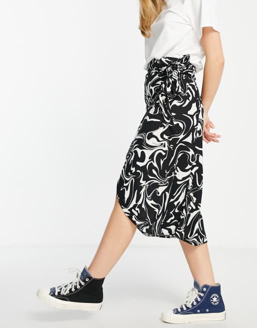 Monki - Strandnederdel med bindebånd i siden i sort med bølgeprint
