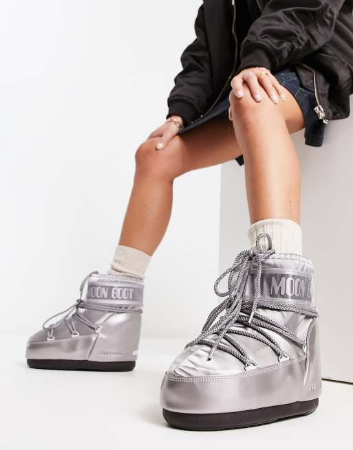 Moon Boot - Icon - Vandtætte, lave støvler i sølvfarvet nylon
