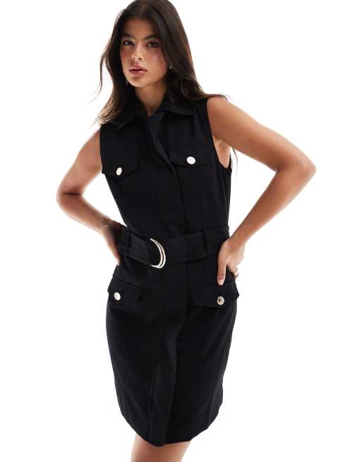 Morgan - Sort blazer-minikjole uden ærmer med spændebæltedetalje