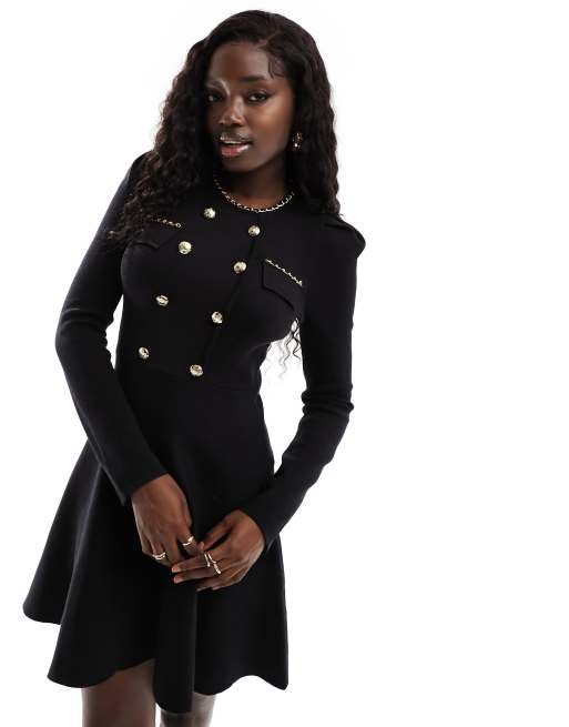 Morgan - Strikket og sort skater-minikjole med knapper og kædeudsmykning