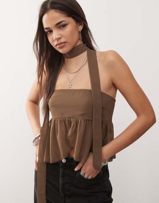 Motel - Ddesir - Kaffebrun bandeau-top med tørklædedetalje