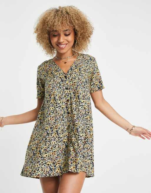 Motel - Minikjole med knapper i gul grunge-blomstermønster