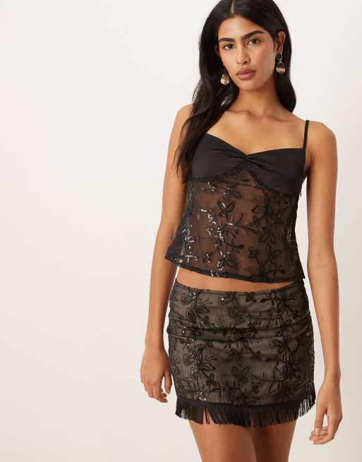 Motel - Rikasu - Sort chiffon-top med pailletter og blomstermønster - Del af sæt