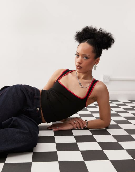 Motel - Shajani - Sort og rød formsyet top med kontrasterende kant