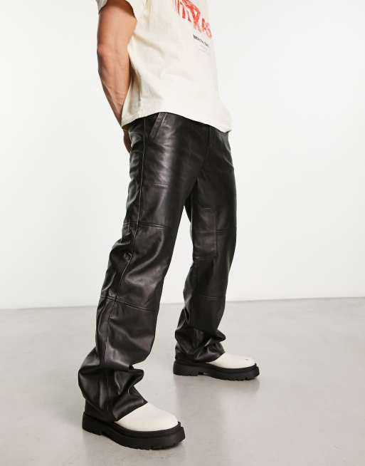 Muubaa - Højtaljede posede bukser med justerbar lukning i sort læder