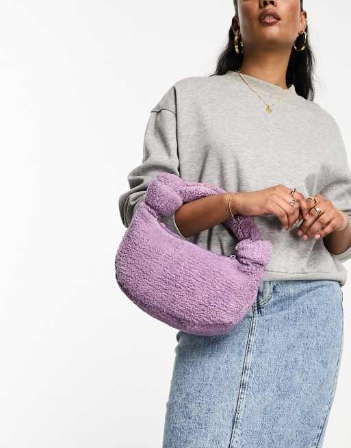 MuuBaa - Lyslilla håndtaske med knudestrop i shearling