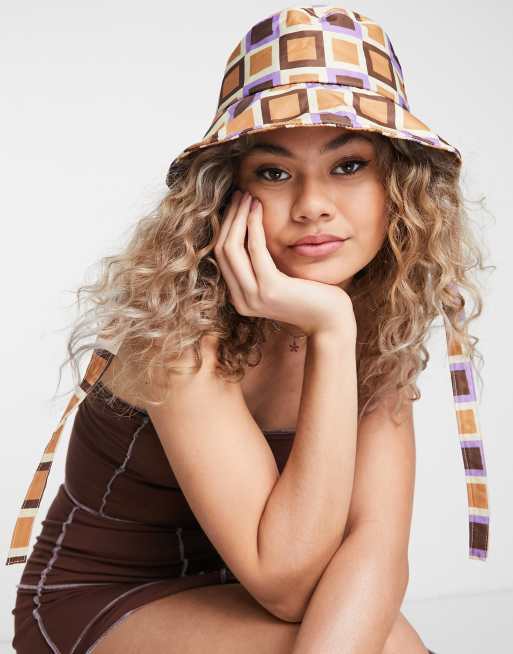 My Accessories London - Oversized solhat med geometrisk 70'er-print og bindestropper - Del af sæt