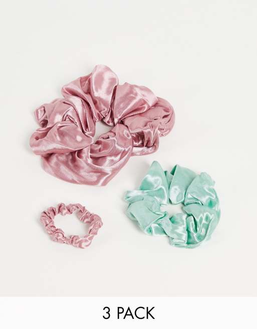 My Accessories - Pakke med 3 blandede scrunchies i pink og salviegrøn