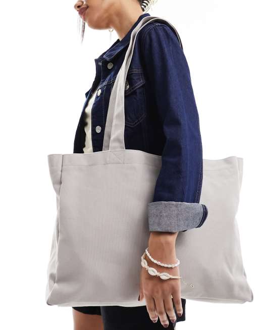 My Accessories - Stor og råhvid tote-taske i lærredsstof