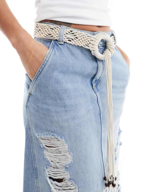 My Accessories - Vævet og cremehvidt bælte i makramé